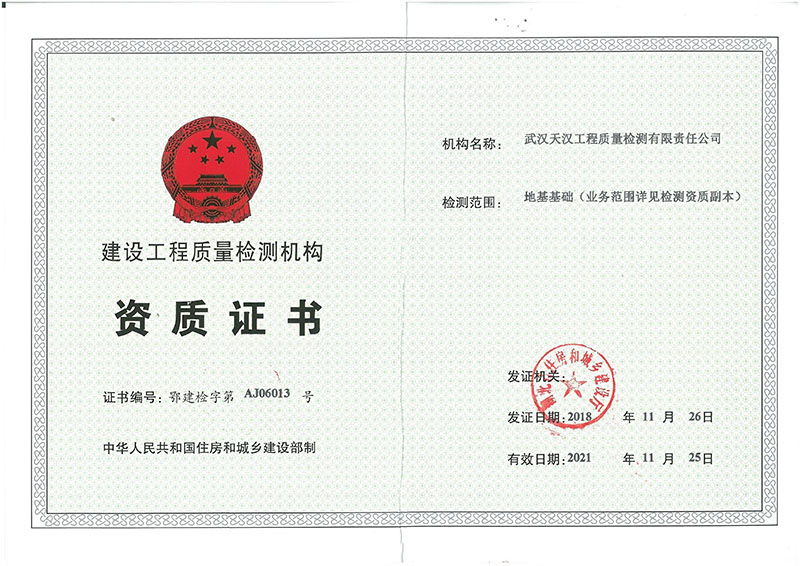 建設(shè)工程質(zhì)量檢測機(jī)構(gòu)資質(zhì)證書
