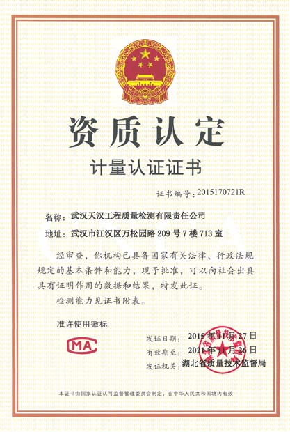 資質(zhì)認(rèn)定計量認(rèn)證證書