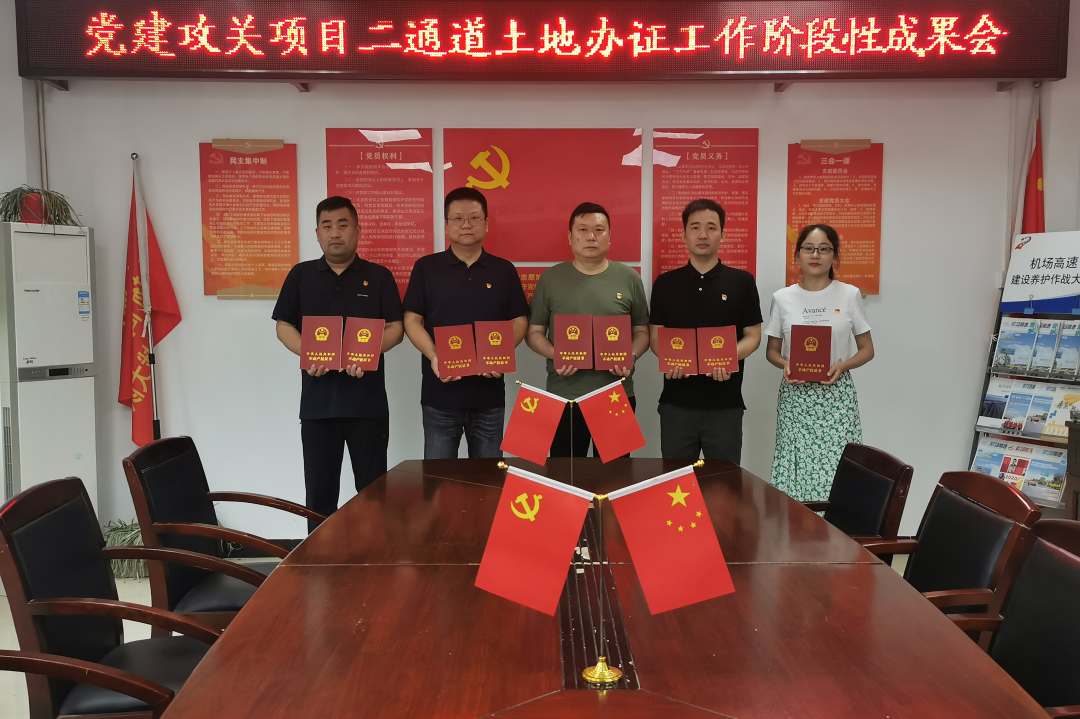 6月23日,項目團(tuán)隊終于順利取得了機(jī)場二通道項目黃陂段的不動產(chǎn)證,并將“紅通通”的成果交付至業(yè)主手中。黨員同志們說道:“身為黨員,必須響應(yīng)城建集團(tuán)黨委的號召,勇當(dāng)先鋒,敢打硬仗,以高效優(yōu)質(zhì)的服務(wù)質(zhì)量贏得市場,以嚴(yán)謹(jǐn)扎實的工作作風(fēng)完成任務(wù),助力重大國有資產(chǎn)的保值增值”。