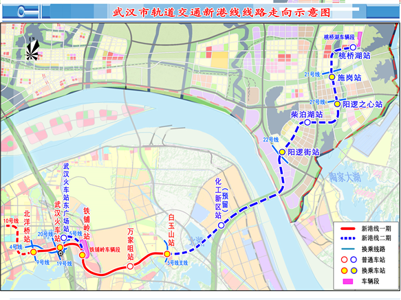 新港線為武漢軌道交通線網中的市域快線,與10號線共同連接了武漢經濟技術開發(fā)區(qū)、王家墩CBD、東部新城及大臨港地區(qū),加快了主城與西南新城組群、東部新城組群的快速復合交通走廊的構建,是軌道交通線網中重要的穿越型市域快線。新港線工程主要串聯(lián)楊春湖副中心、武漢火車站、青山區(qū)武東、北湖新城、陽邏新城等片區(qū),重點服務于東部新城組團,強化東部新城組團與武漢高鐵站的銜接,加強東部新城組團與主城區(qū)的聯(lián)系,支撐東部新城組團發(fā)展。