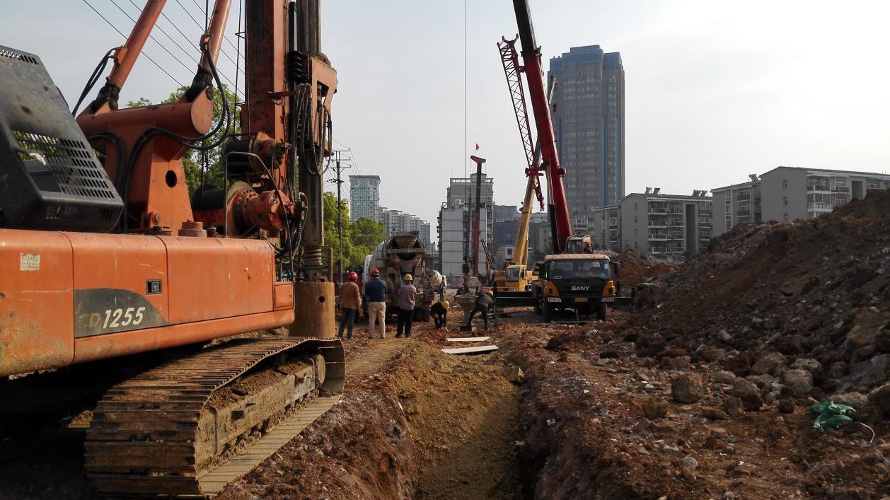 目前,我司已進(jìn)場(chǎng)進(jìn)行支護(hù)樁施工,施工正常。(基礎(chǔ)三部)
