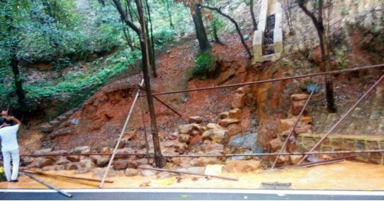 7月5日,受連日暴雨影響,國(guó)家人防防空防災(zāi)教育訓(xùn)練基地(武漢)公路邊坡出現(xiàn)多處垮塌,垮塌巖土體散落于邊坡坡腳排水溝及基地公路路面附近,影響了道路通行。公司應(yīng)急搶險(xiǎn)團(tuán)隊(duì)火速趕到現(xiàn)場(chǎng)清除滑塌堆積體,及時(shí)開展填方邊坡與公路之間的土體防滲工作,重新架構(gòu)起已沖毀的管道,用毛石、砼等填筑洗空區(qū),采用削方減緩已垮塌邊坡坡度,最大程度還原了邊坡原貌,并不斷加大巡查力度,做好了基地公路沿線類似地質(zhì)災(zāi)害潛在隱患的預(yù)判和預(yù)處置。
