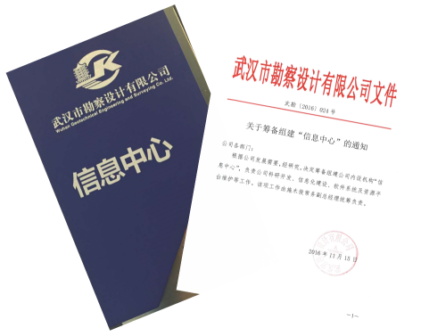 2017年1月1日,武漢市勘察設(shè)計(jì)有限公司正式下文成立信息中心,主要負(fù)責(zé)公司科研開發(fā)、信息化建設(shè)、軟件系統(tǒng)及資源平臺(tái)維護(hù)等工作。