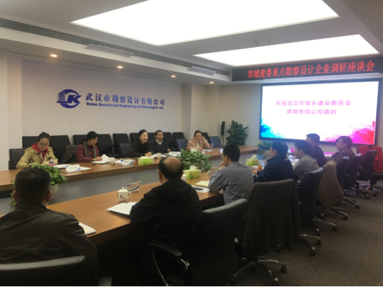 為全面了解武漢市勘察設(shè)計(jì)企業(yè)經(jīng)營(yíng)狀況,切實(shí)掌握企業(yè)運(yùn)行情況,更好的為企業(yè)發(fā)展服務(wù),3月16日下午,市城建委林琨副主任、設(shè)計(jì)處徐海清處長(zhǎng)、設(shè)計(jì)之都發(fā)展中心(審查辦)胡華瑩副主任、海管辦劉婕科長(zhǎng)、節(jié)能處明珊科長(zhǎng)赴我司進(jìn)行了考察調(diào)研。市測(cè)繪院肖建華院長(zhǎng),公司廖建生董事長(zhǎng)、施木俊總經(jīng)理及其他高管層、職能部門負(fù)責(zé)人參加了座談。