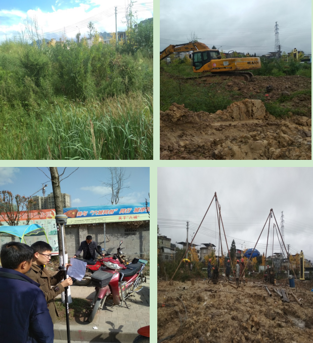 2018年8月受建設方委托,我司進場進行施工勘察,施工勘察采取一樁一孔,共計樁數501根,為滿足建設方的工期要求,我方技術人員與勞務人員,在建設方明確場地條件不具備,但需我司暫時配合、克服困難,對局部樓棟進行施工勘察的情況下,采用多次進場,多次放樣,并用挖機配合方式進行施工,順利完成了建設方交代的任務,獲得了業(yè)主的好評,后續(xù)未施工鉆孔,待建設方整平場地后進行。
