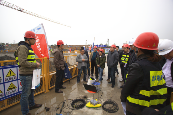 2018年11月19日下午,在公司副總經(jīng)理兼總工程師官善友的帶領下,綜合部、技術(shù)質(zhì)量安全部、檢測監(jiān)測公司、基礎工程公司、設計中心、土工試驗室等部門技術(shù)骨干,來到北湖污水處理廠深隧泵房項目施工現(xiàn)場,觀摩學習了聲納滲流檢測技術(shù),同行還有武漢地鐵集團有限公司、鐵四院、中鐵大橋局等同行業(yè)的專家和技術(shù)骨干人員。