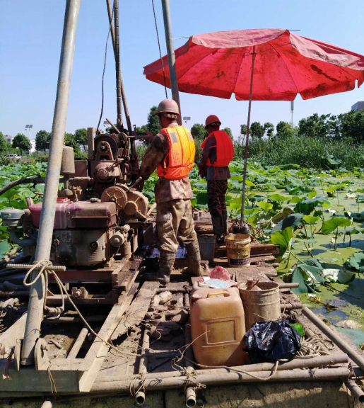 本工程任務(wù)重,勘探工作量大,開(kāi)工前項(xiàng)目負(fù)責(zé)人對(duì)現(xiàn)場(chǎng)鉆探人員進(jìn)行了技術(shù)交底、環(huán)安教育及思想工作?辈炱陂g正值持續(xù)高溫天氣,給外業(yè)工作帶來(lái)了巨大挑戰(zhàn),但工作過(guò)程中項(xiàng)目成員及鉆探人員吃苦耐勞、堅(jiān)守崗位,加班加點(diǎn),保證外業(yè)進(jìn)度的同時(shí),也不懈怠安全生產(chǎn)及質(zhì)量把控,使得勘察工作有條不紊的進(jìn)行。