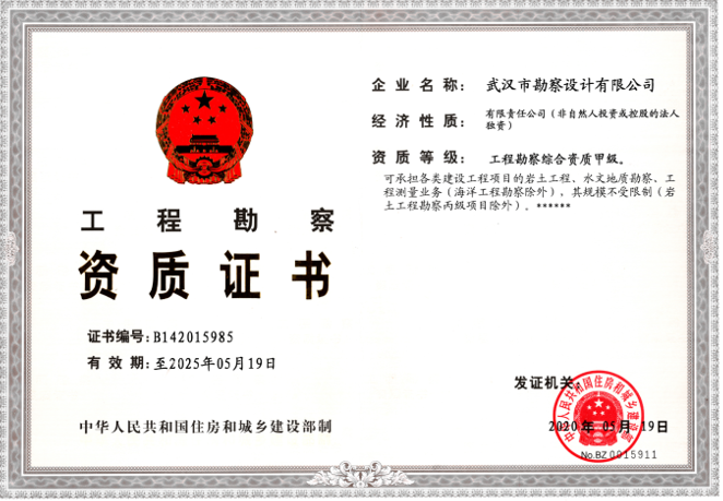 2020年5月19日,我司工程勘察綜合資質(zhì)甲級延期申報材料順利通過國家住房和城鄉(xiāng)建設(shè)部的最終審核,獲準(zhǔn)延期,取得了國家住建部頒發(fā)的工程勘察綜合資質(zhì)甲級新證,為我司今后能夠順利承接各類建設(shè)工程項目的巖土工程、水文地質(zhì)勘察、工程測量業(yè)務(wù)等提供了有力的保障。