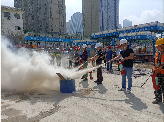 此次演練活動的主要內(nèi)容是模擬項目生活區(qū)發(fā)生火災(zāi),檢驗發(fā)生火災(zāi)后,項目應(yīng)急預(yù)案啟動、響應(yīng)、救援、處置等情況;演練現(xiàn)場參演人員從火情報告、疏散、救援等行動迅速有序。最后的滅火實戰(zhàn)演練,先由項目管理人員講解滅火器的檢查、使用方法,全體演練人員進行滅火實操演練。
