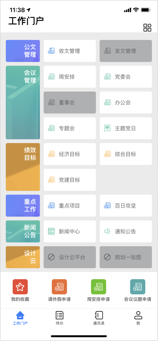 目前,該平臺成功上線了收文管理、會議管理、績效目標、重點工作、考勤管理和車輛管理功能板塊。在勘察公司信息與創(chuàng)研中心項目組成員的努力下,搭建了流轉高效、精準督辦的公文體系,大幅度提升了集團公文辦理效率;實現了會議管理、績效目標、重點工作等數據查看方便、跟進有序;完成了集團管理權限范圍內人員請銷假和用車的網上申報、網上審批和網上歸檔。