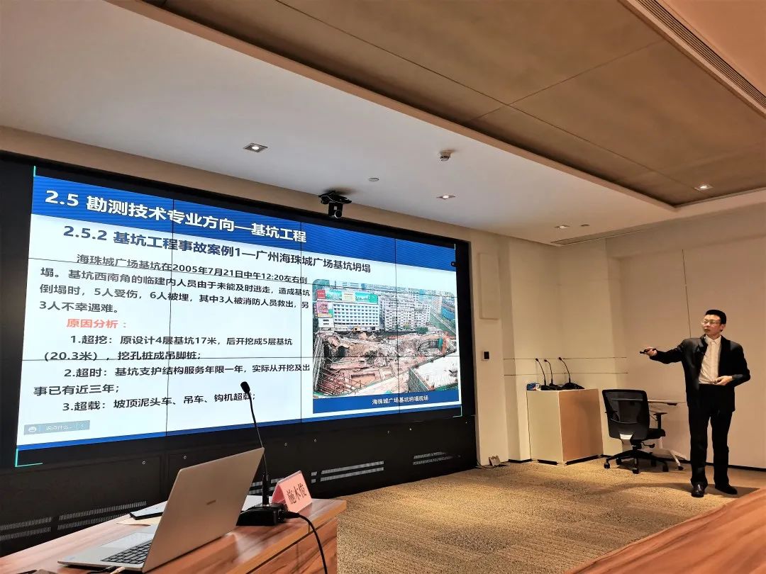 授課進(jìn)入尾聲時(shí),施木俊重點(diǎn)推介了公司在行業(yè)發(fā)展,企業(yè)管理上的優(yōu)勢(shì):在勘測(cè)與巖土工程專業(yè)領(lǐng)域,武勘公司能為工程建設(shè)項(xiàng)目的策劃階段提供最優(yōu)解,能精準(zhǔn)把控工程全過(guò)程風(fēng)險(xiǎn),實(shí)現(xiàn)項(xiàng)目風(fēng)險(xiǎn)、經(jīng)濟(jì)與時(shí)間相平衡;已積累的分布在武漢各地?cái)?shù)十萬(wàn)的鉆孔資料和已建設(shè)的數(shù)據(jù)管理平臺(tái),為項(xiàng)目開發(fā)初期高效準(zhǔn)確進(jìn)行成本、工期預(yù)估提供了重要基礎(chǔ)資源;現(xiàn)有的智慧監(jiān)測(cè)平臺(tái)及自動(dòng)運(yùn)行的測(cè)量機(jī)器人讓項(xiàng)目建設(shè)與運(yùn)行維護(hù)一切盡在掌握;管理信息化更是成為了打破深井,為企業(yè)發(fā)展賦能的重要手段。
